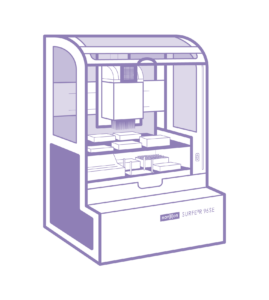 - Sonda kontaktowa o zmiennej ogniskowej (NA = 0.6, WD = 0–200 μm)